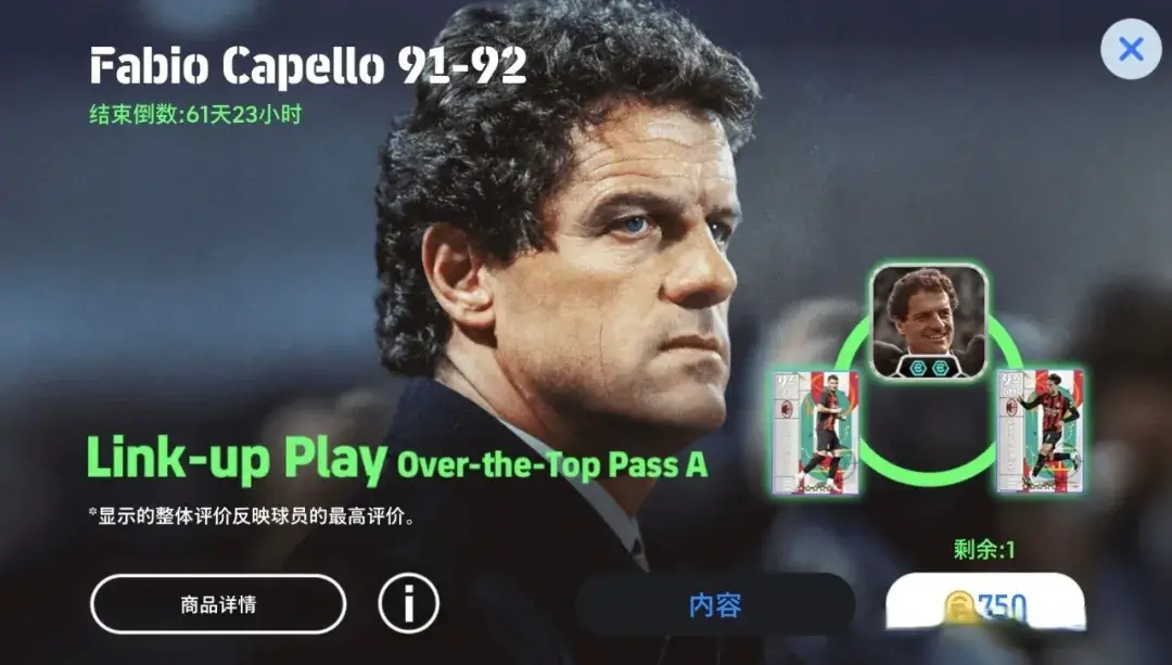 另外再提醒大家一句,国服官方发布的新版本前瞻中明确提到了大更后将会上架“心有灵犀”教练,但经过本人统计,除了搭载过顶长传的卡佩罗之外,26版本的实况足球中其它“心有灵犀”教练的热门程度都不高鼎冠优配,届时大家也没有必要花大价钱入手阿莫里姆、穆里尼奥等搭载“心有灵犀”技能的新教练,以目前的实战经验来看,教练选择上依然是长反风格>增能属性>教练技能。